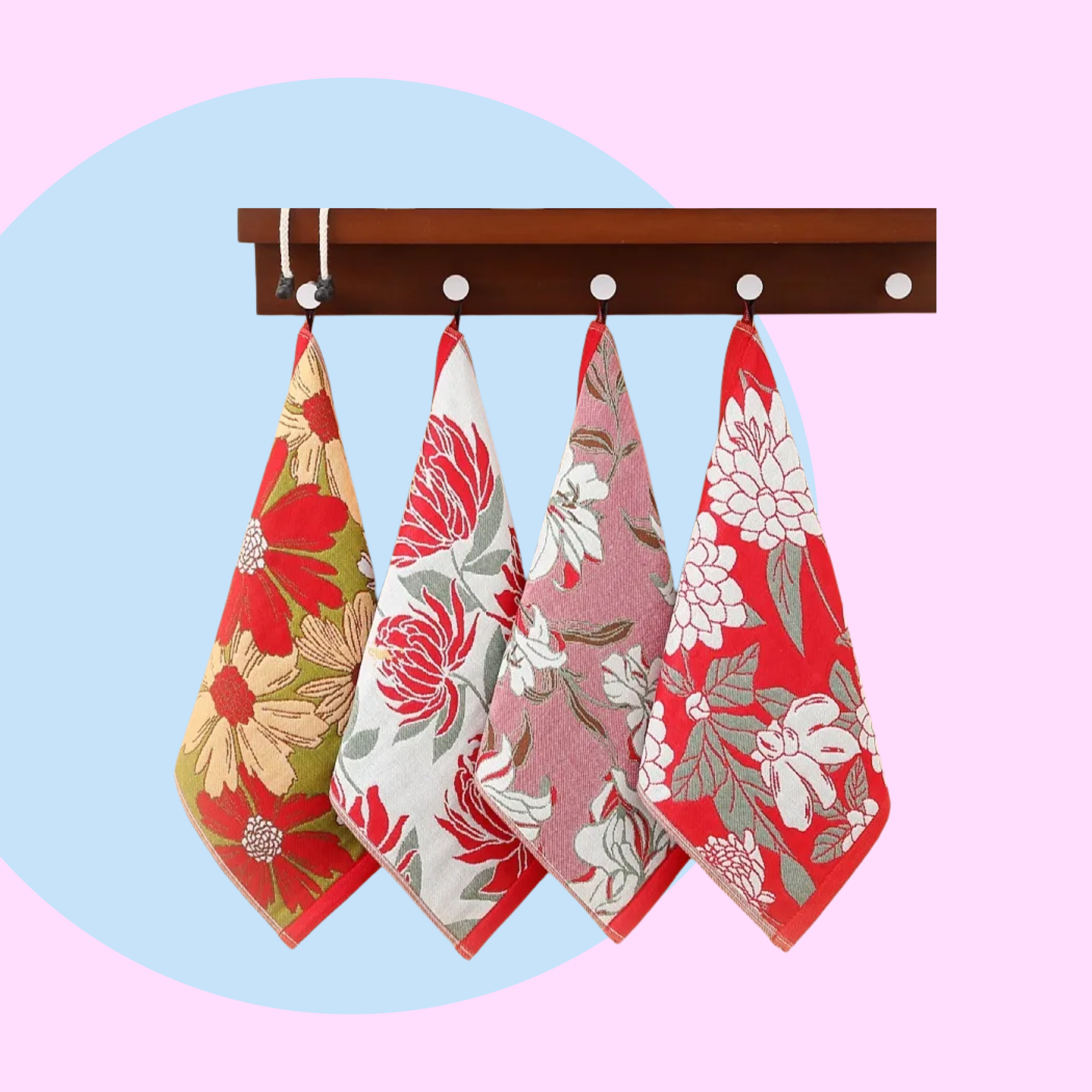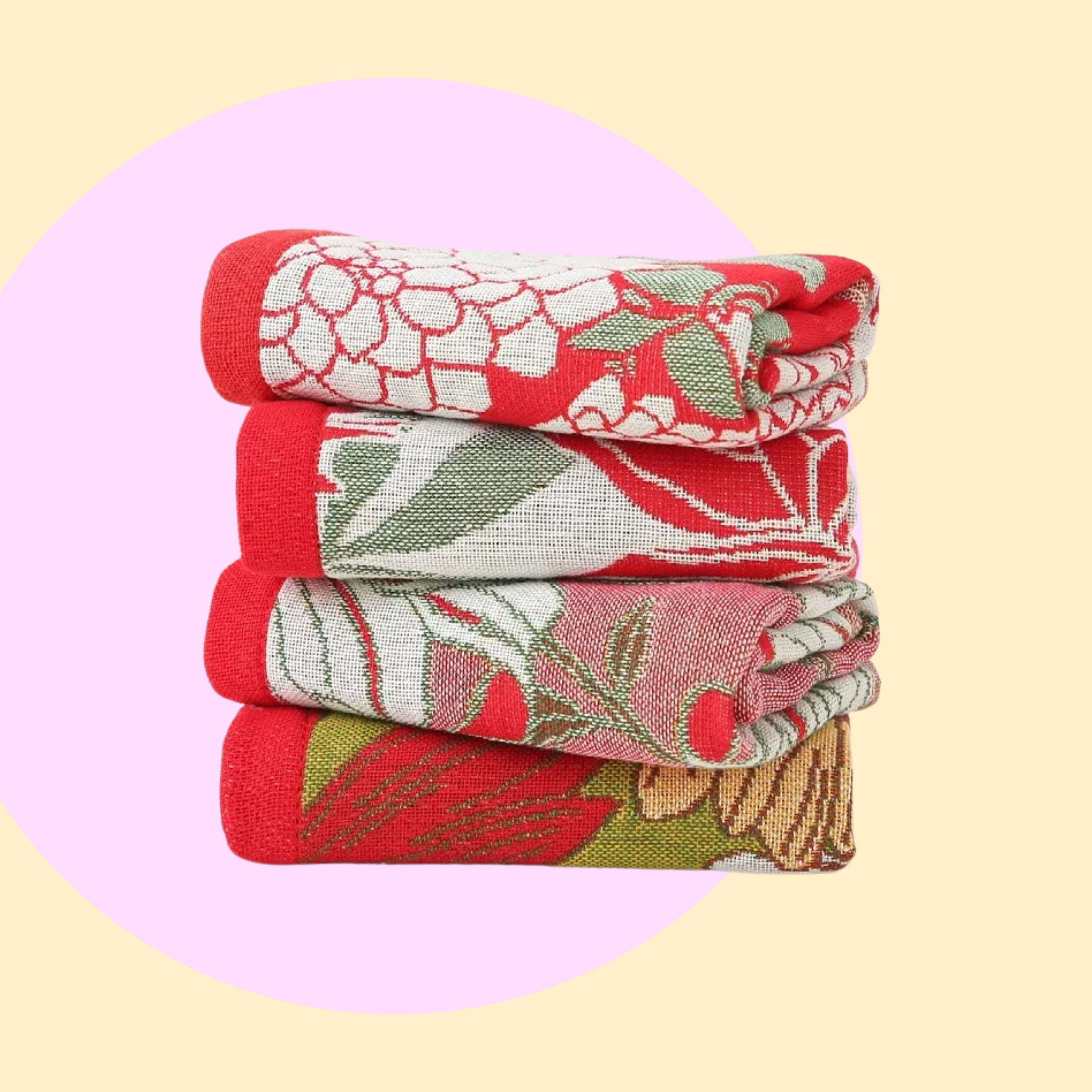 As spring approaches, we are bringing to you the Kiku Hand Towels Set. Each set comes in 4 uniquely design, inspired by the beautiful chrysanthemum showcased in the a vibrant red background.