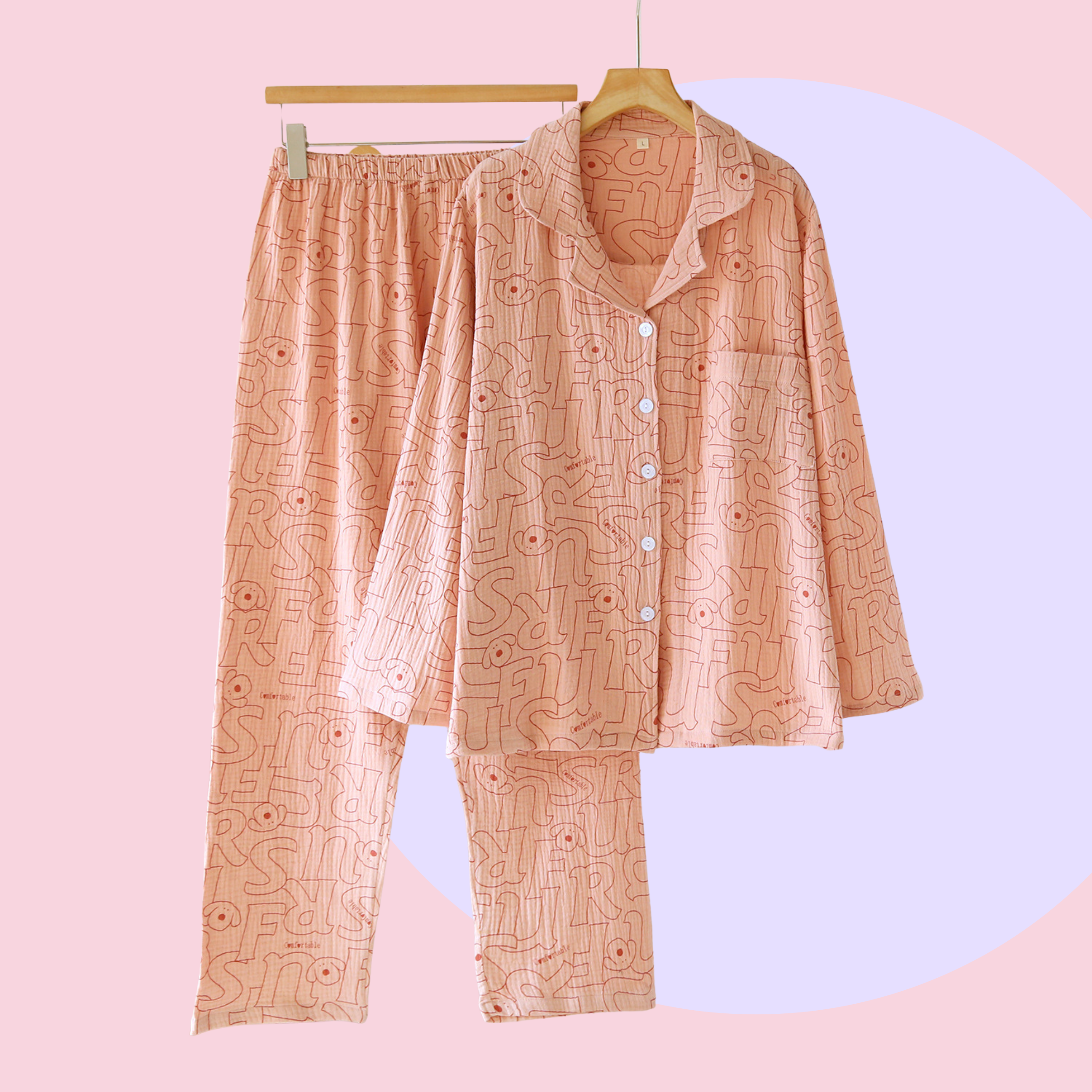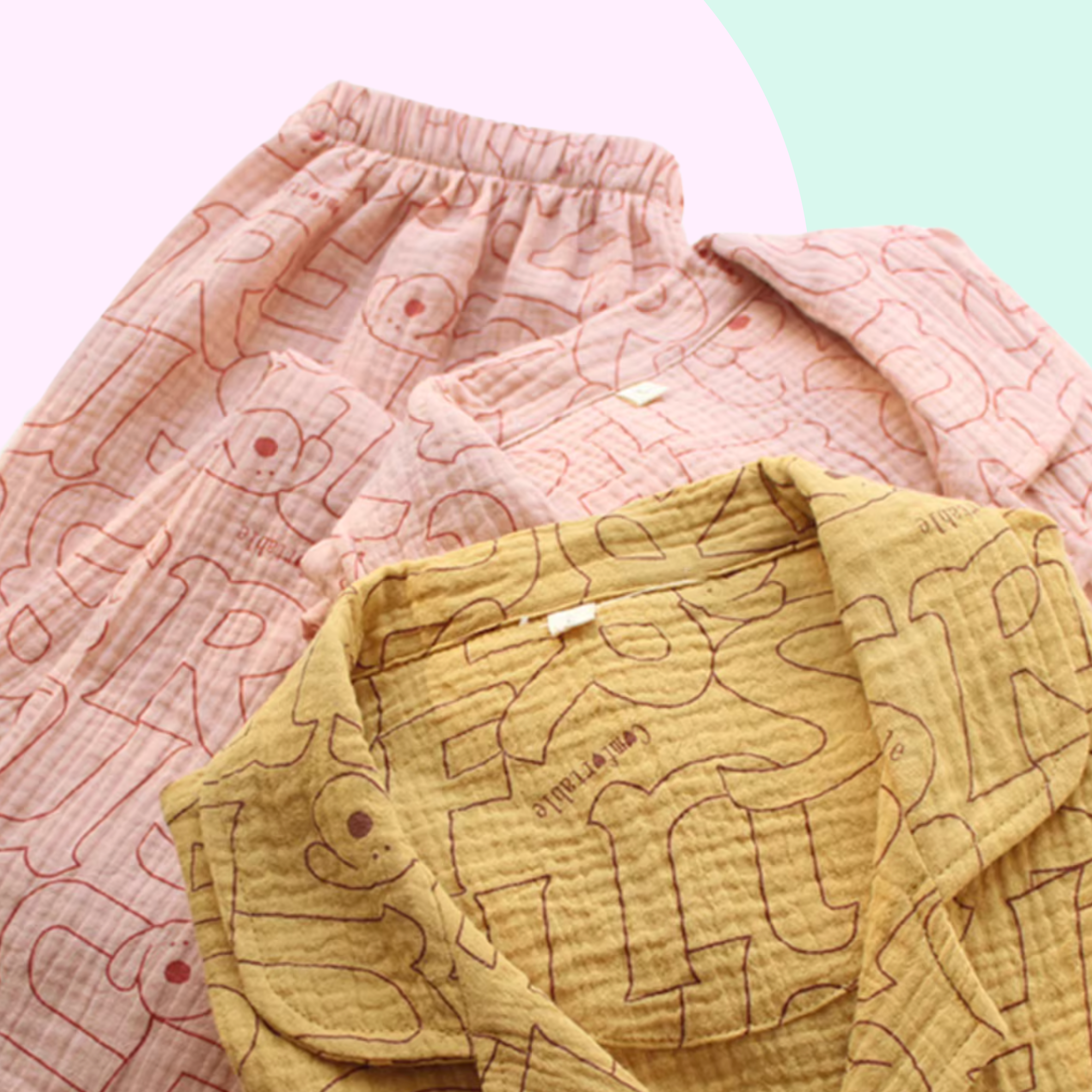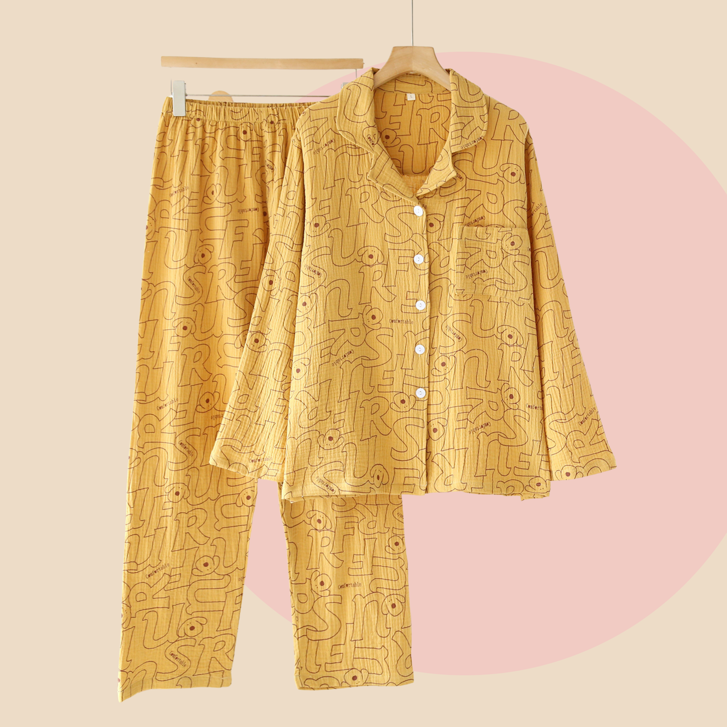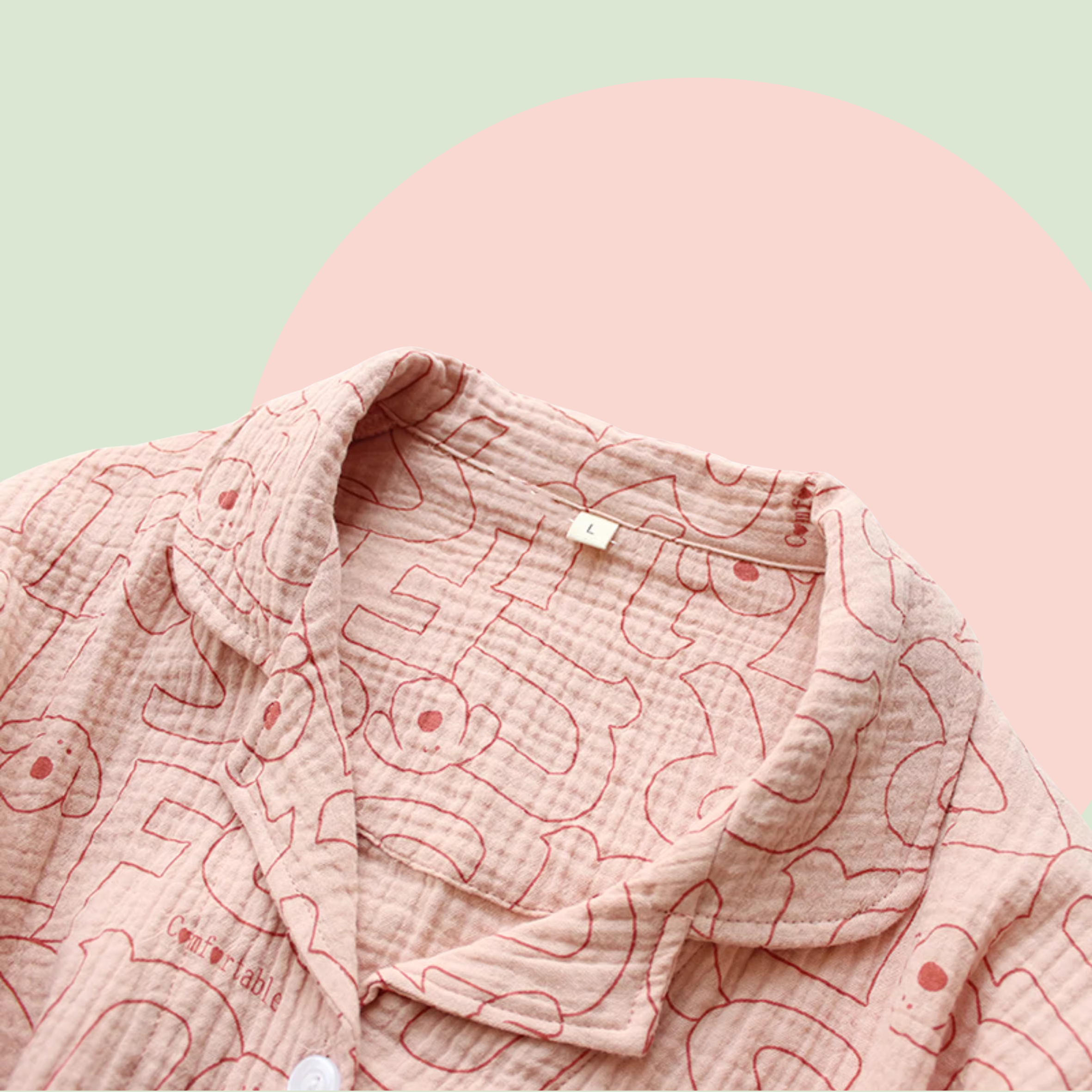 These pyjamas are made of a soft cotton with a subtle crinkle that gives you just a little extra stretch and comfort.