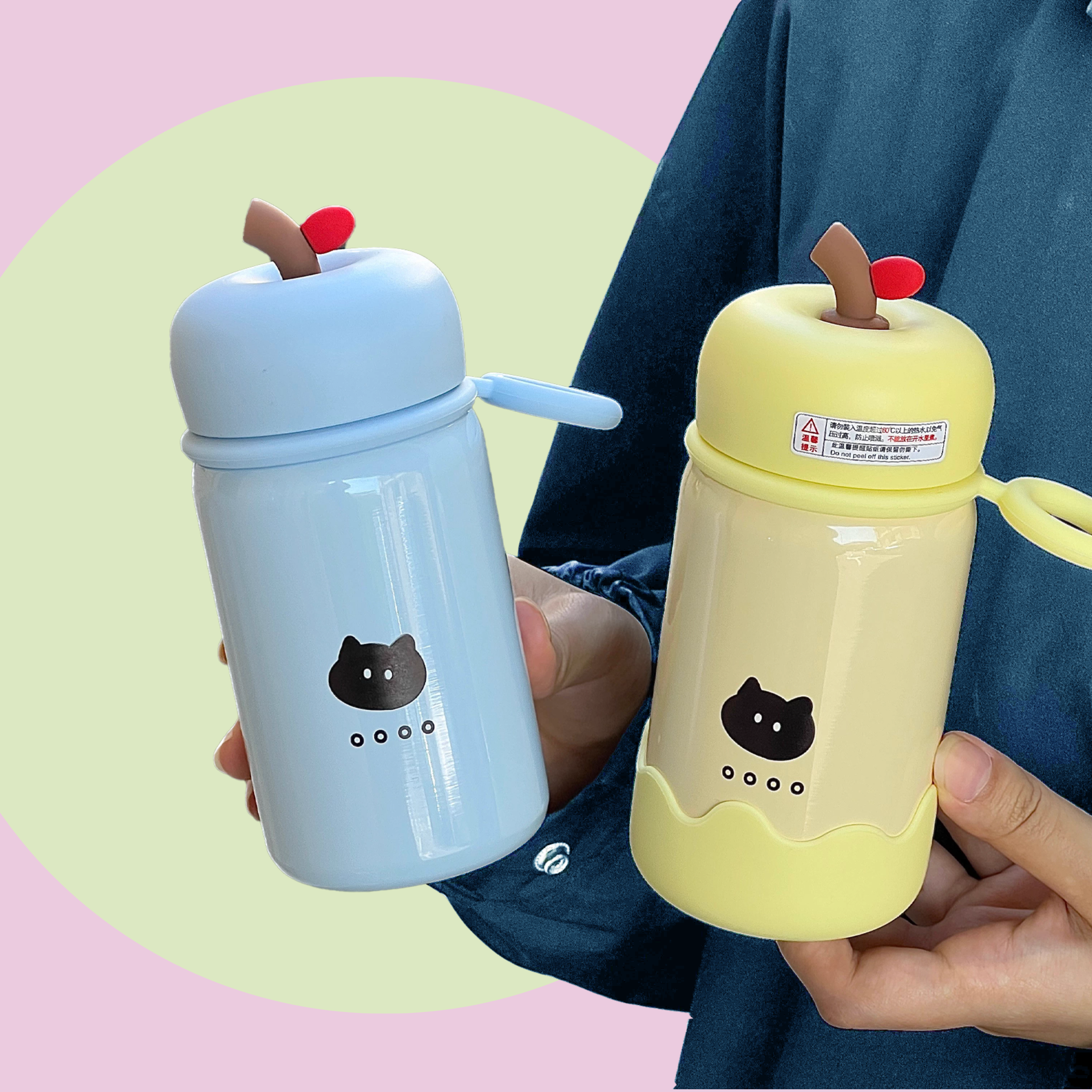 Check out the lids~ ahh so cute! We are loving the apple stalk and that adorable little leaf detail? We adore! The base is also protected with a soft silicon sleeve, so it's not knocking around and scuff against the items in your bag!