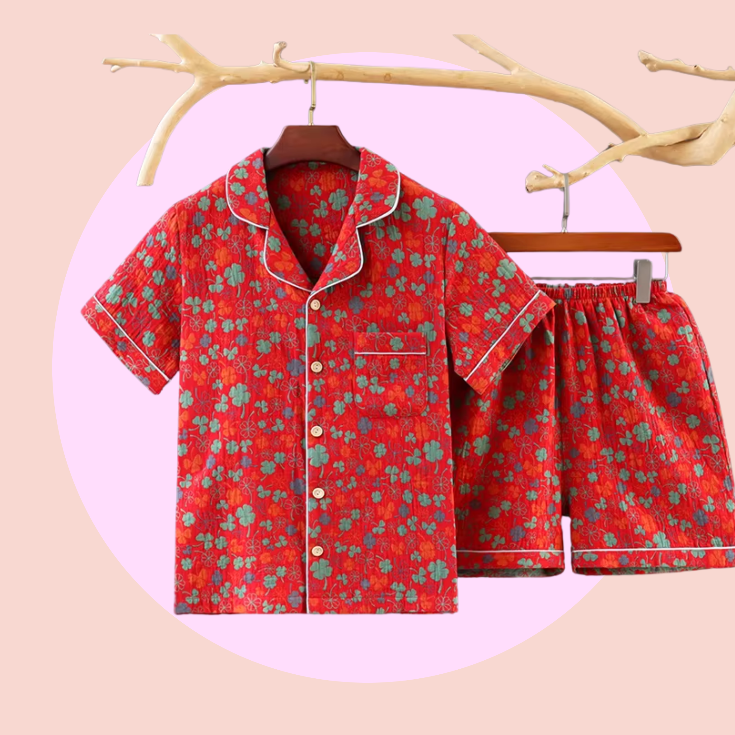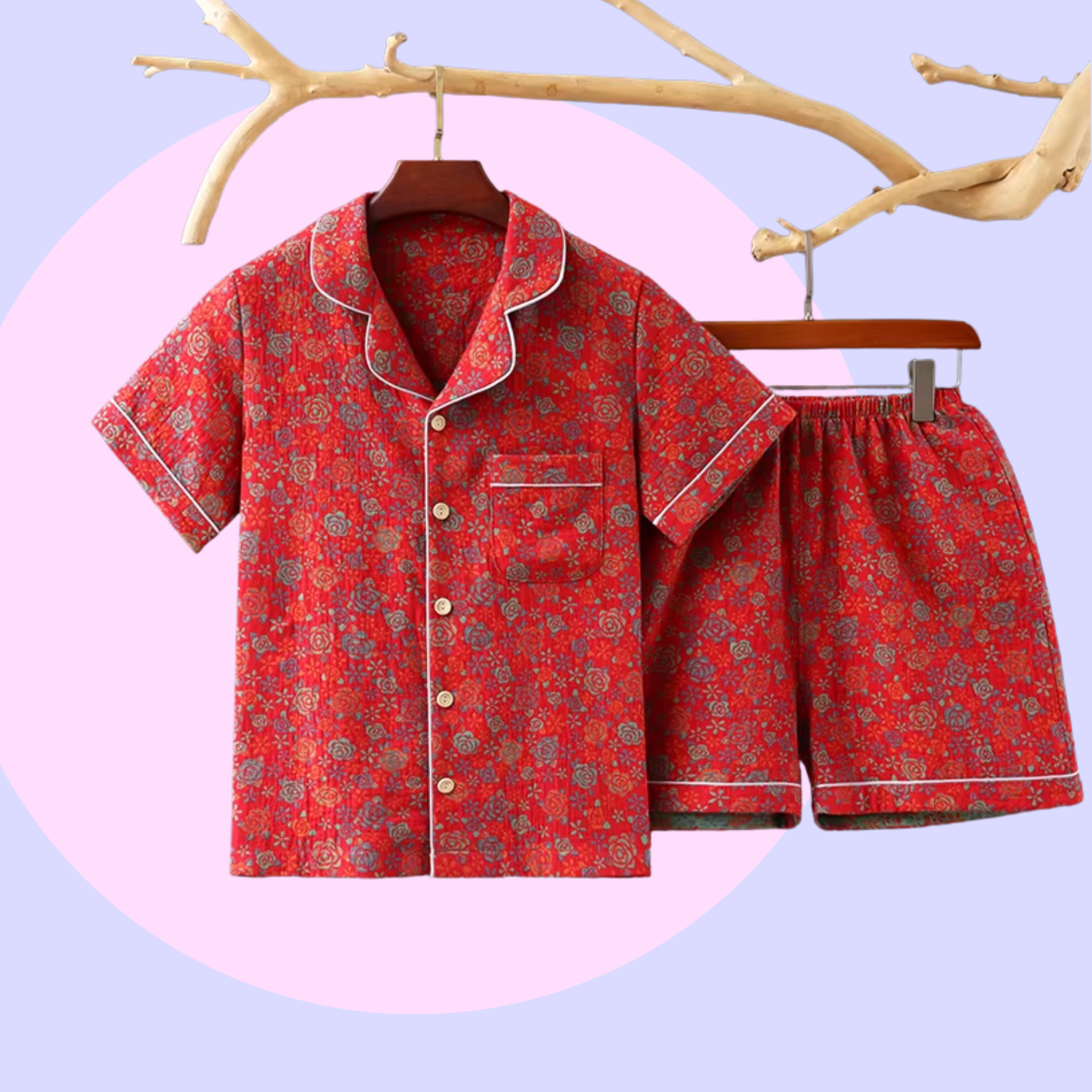 Update your bedroom wardrobe with these beautiful pyjamas. They are made of a slightly heavier cotton, great for a cooler night or when you have the A/C on! The fabric has a subtle texture and we think that's what gives this pyjamas a more luxurious, richer finish.