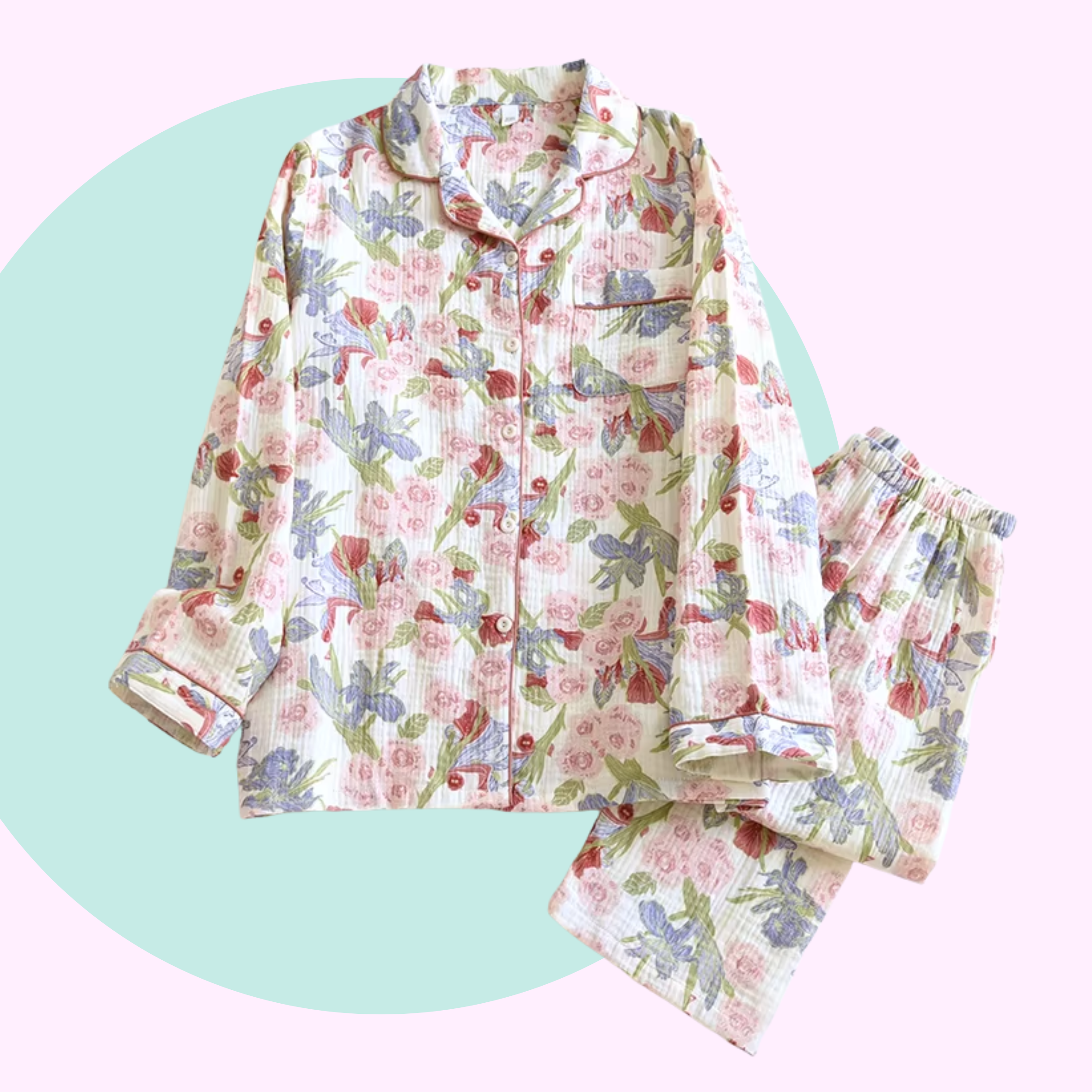 Are you feeling romantic like us? Well, we are in the mood for love ❤️ with this set of Sweet Rose Cotton Pyjamas. These pyjamas are made of a soft cotton with a subtle crinkle that gives you just a little extra stretch and comfort. And let's not forget how adorable the watercolour, illustrative quality of the roses. Ahhh, we are in looooove!