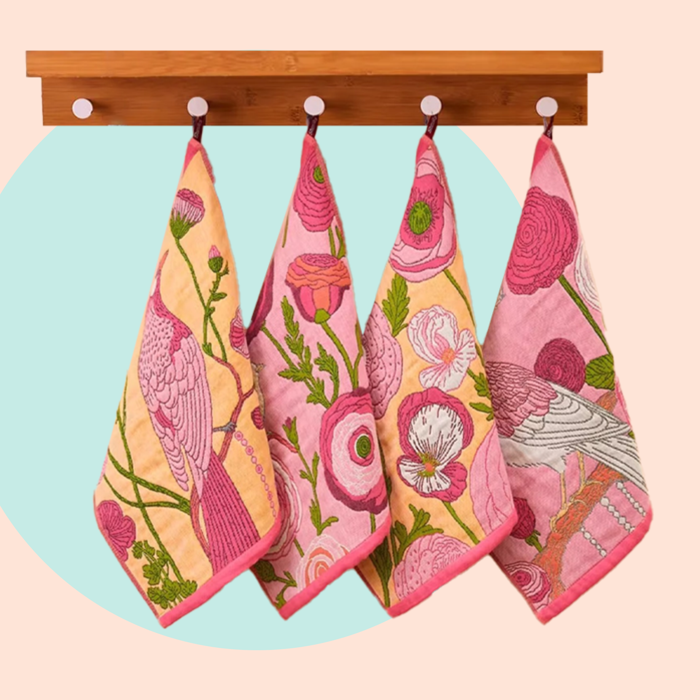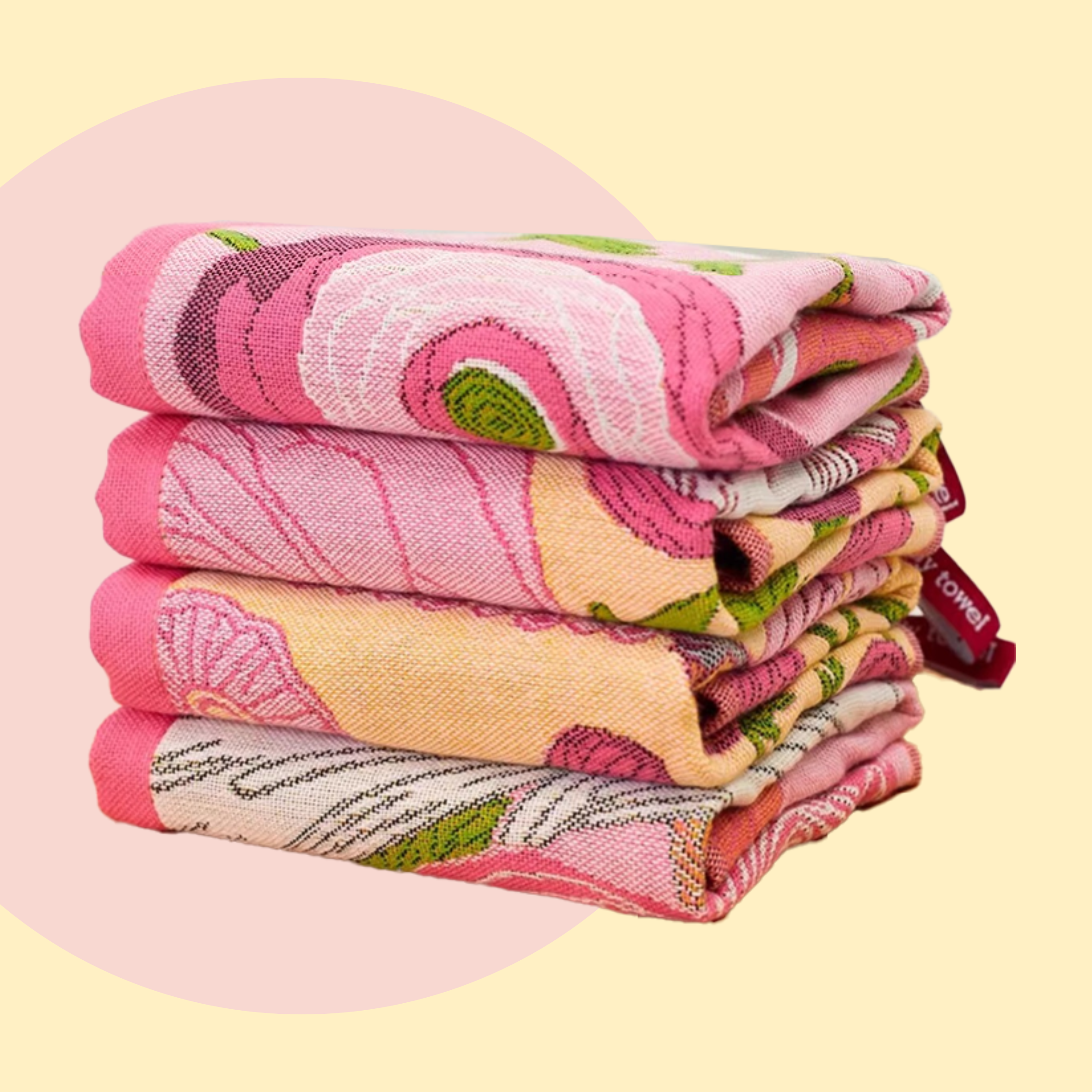 Just check out the bold designs and vibrant colours, that contrasting pinks and yellows are just simply STUNNING! The towels all come with a handy little hanging hoop as well, and they are all machine washable. Totally fitting with our Cute, Smart, Practical ethos!