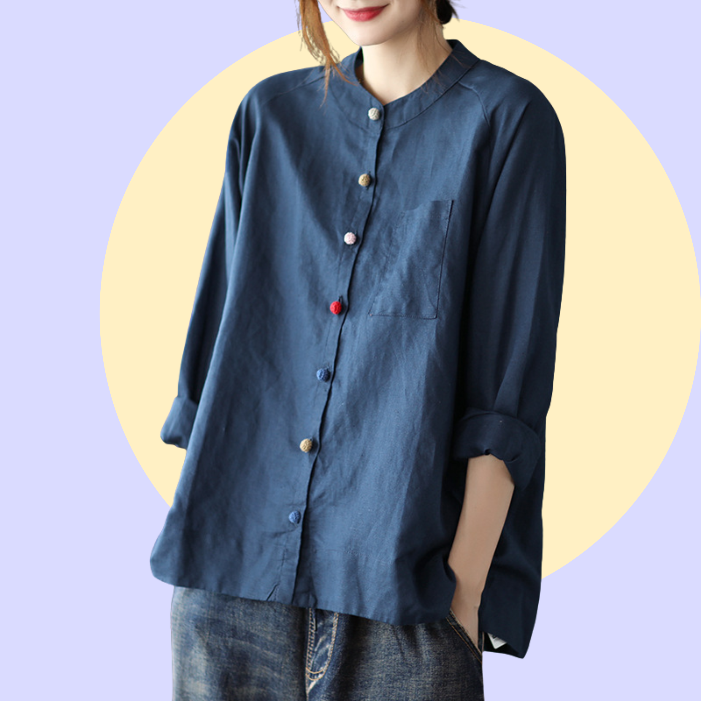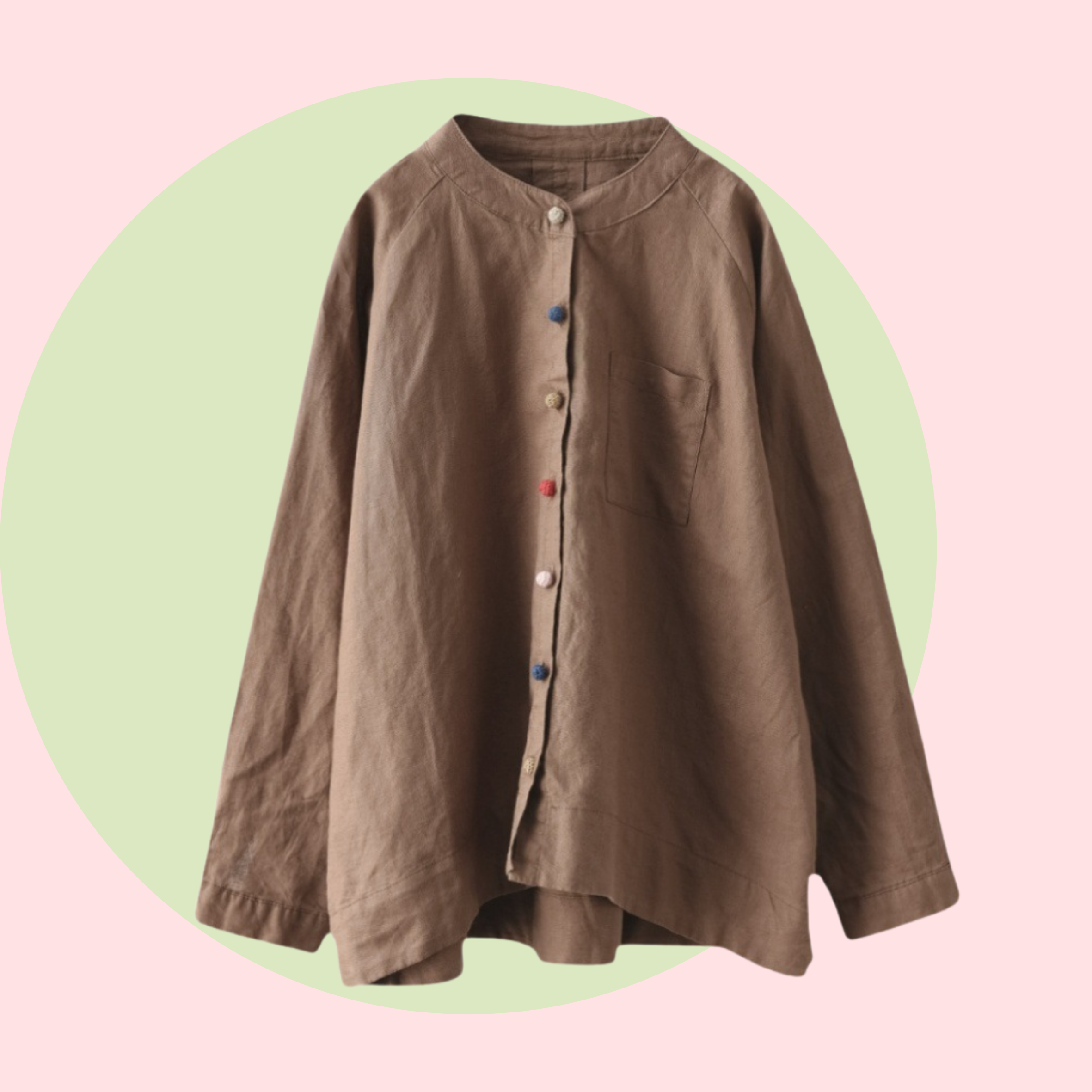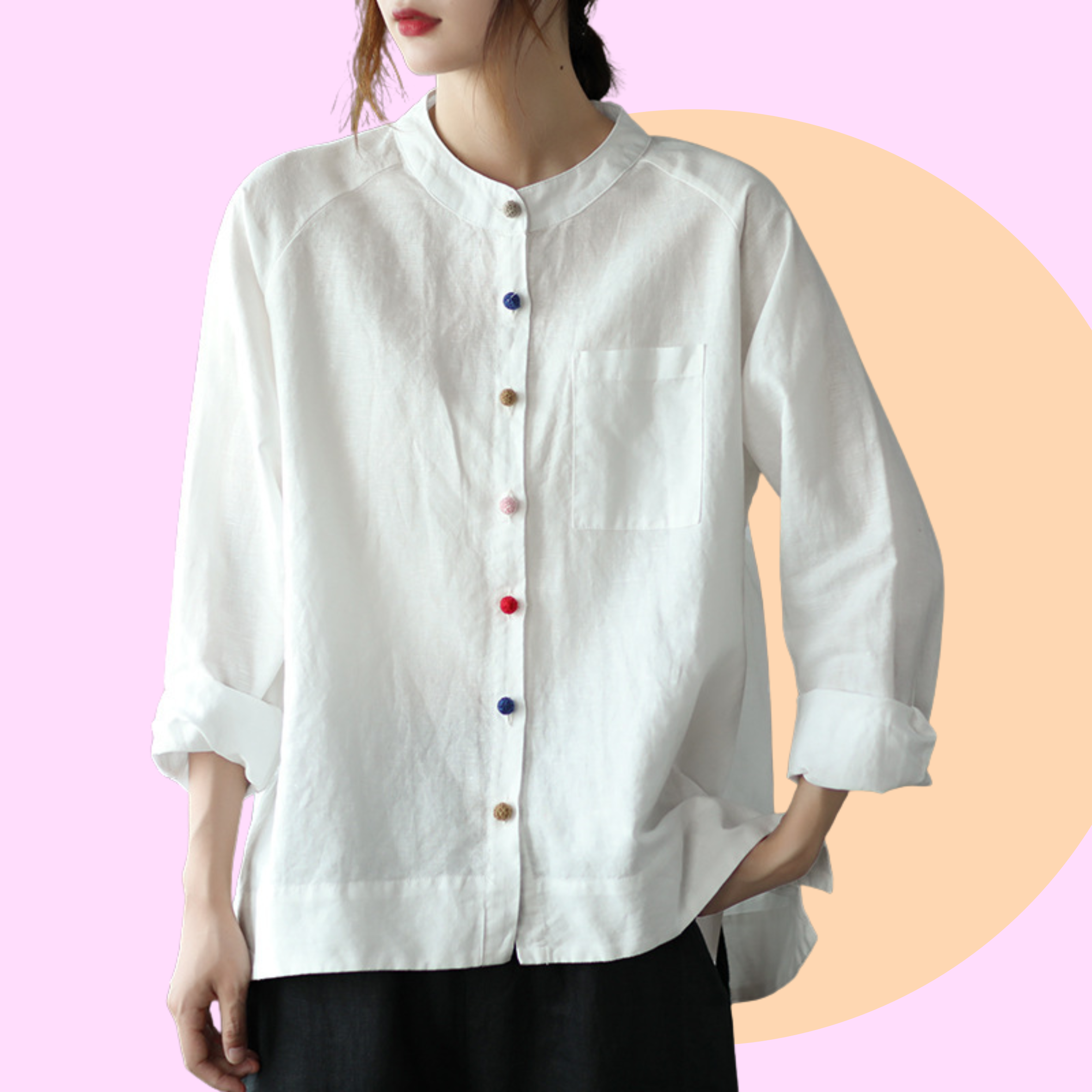 Simple, elegant, and with a pop of fun ~ We think that sums up this Rainbow Niji Cotton Shirt perfectly. This shirt is made of 100% cotton, making it soft and breathable, most importantly great for the environment. This garment is finished with a rainbow coloured buttons, ahh super cute! So simple, but impactful!
