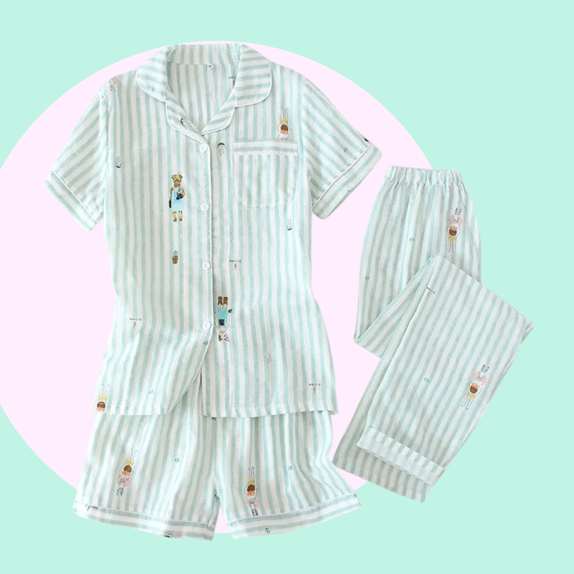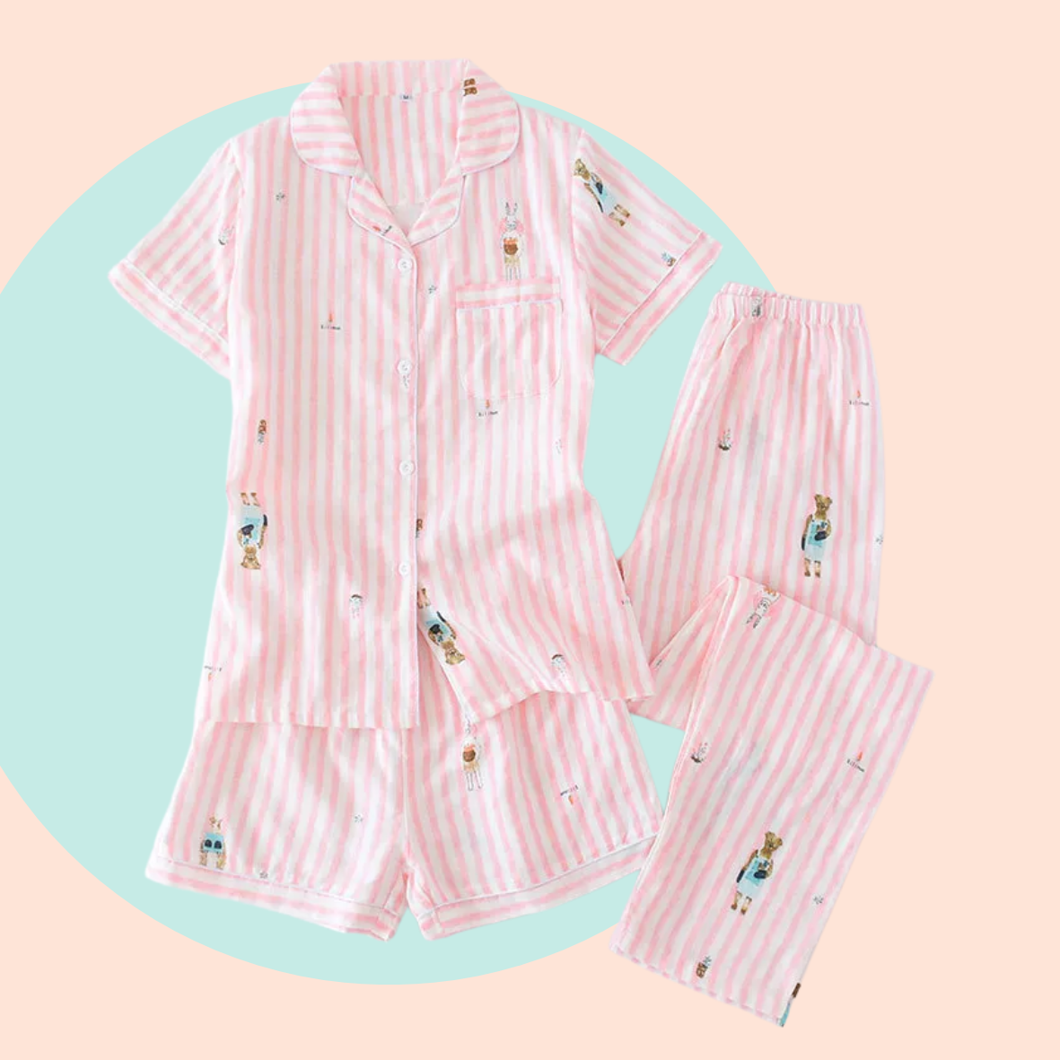 Also, here's the thing that we love most ~ This adorable set cover you for ALL 4 seasons! It comes with both shorts & long pant ( yes! the set is 3 pieces). You are going to be able to enjoy this all year round :) These pyjamas are made of soft, breathable cotton, keeping you cosy all year long :)
